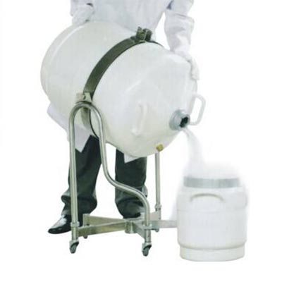 該產(chǎn)品采用全不銹鋼制造,便于用戶在室內(nèi)方便轉(zhuǎn)運(yùn)液氮罐,解決了大容積液氮罐轉(zhuǎn)運(yùn)困難的問(wèn)題,同時(shí)可以方便地將其手推把拆換成翻轉(zhuǎn)架部件,達(dá)到輔助人工傾倒容器中液氮的目的。具有轉(zhuǎn)運(yùn)和傾倒液氮罐安全可靠、節(jié)省體力的優(yōu)點(diǎn)。